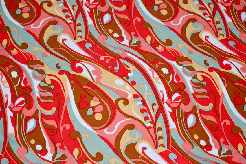 Il fondo viene vivacizzato dalla sgargiante fantasia multicolor che unisce perfettamente il rosso, il giallo ed il grigio donando colore e carattere alla stoffa.