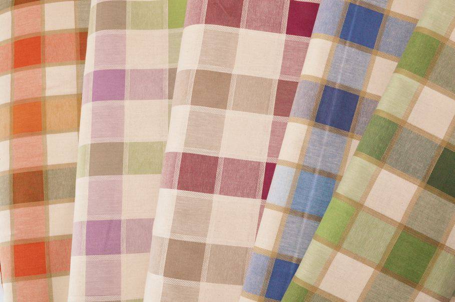Tessuto realizzato interamente in puro cotone tinto filo finalizzato alla realizzazione di tovagliati ed elementi di arredo cucina. Misura scacco 5x5 cm. Lavabile a 60°