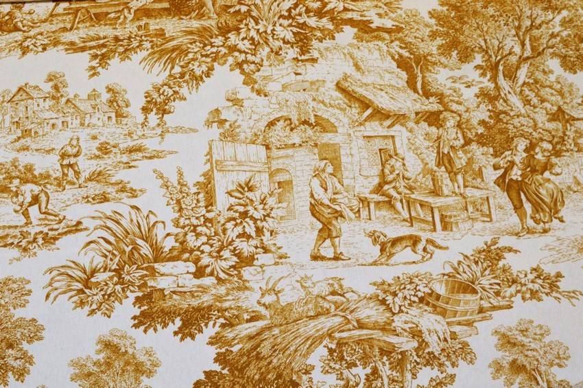 Vendita online cotoni toile de jouy tessuto cotone panama toile de jouy senape - Tessuti & Stoffe