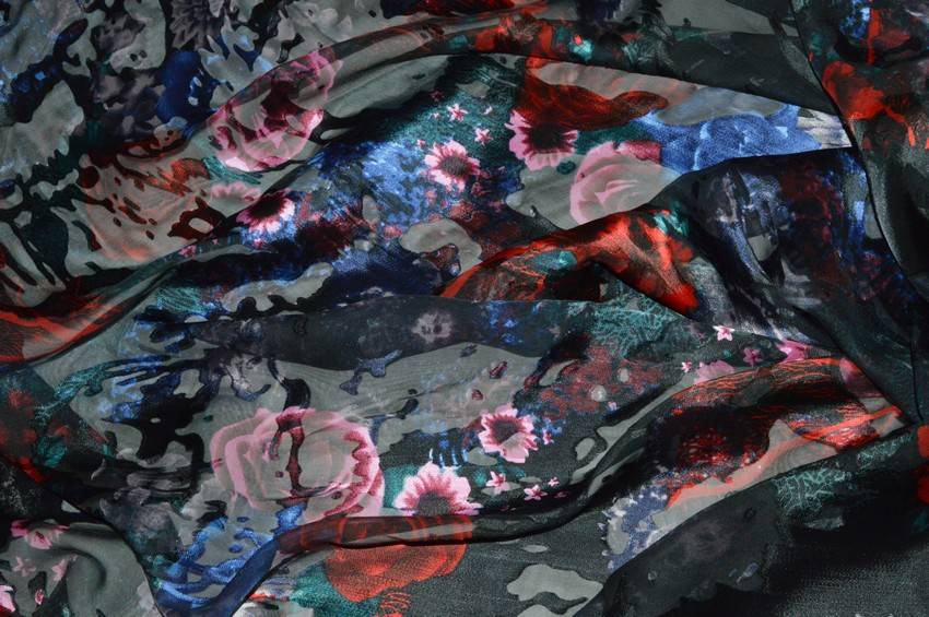 Vendita online tessuti abbigliamento georgette / chiffon dèvorè tessuto devoreh pura seta fantasia floreale fondo nero - Tessuti & Stoffe