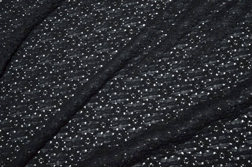 Vendita online tessuti abbigliamento poliestere tessuto pizzo elasticizzato nero - Tessuti & Stoffe