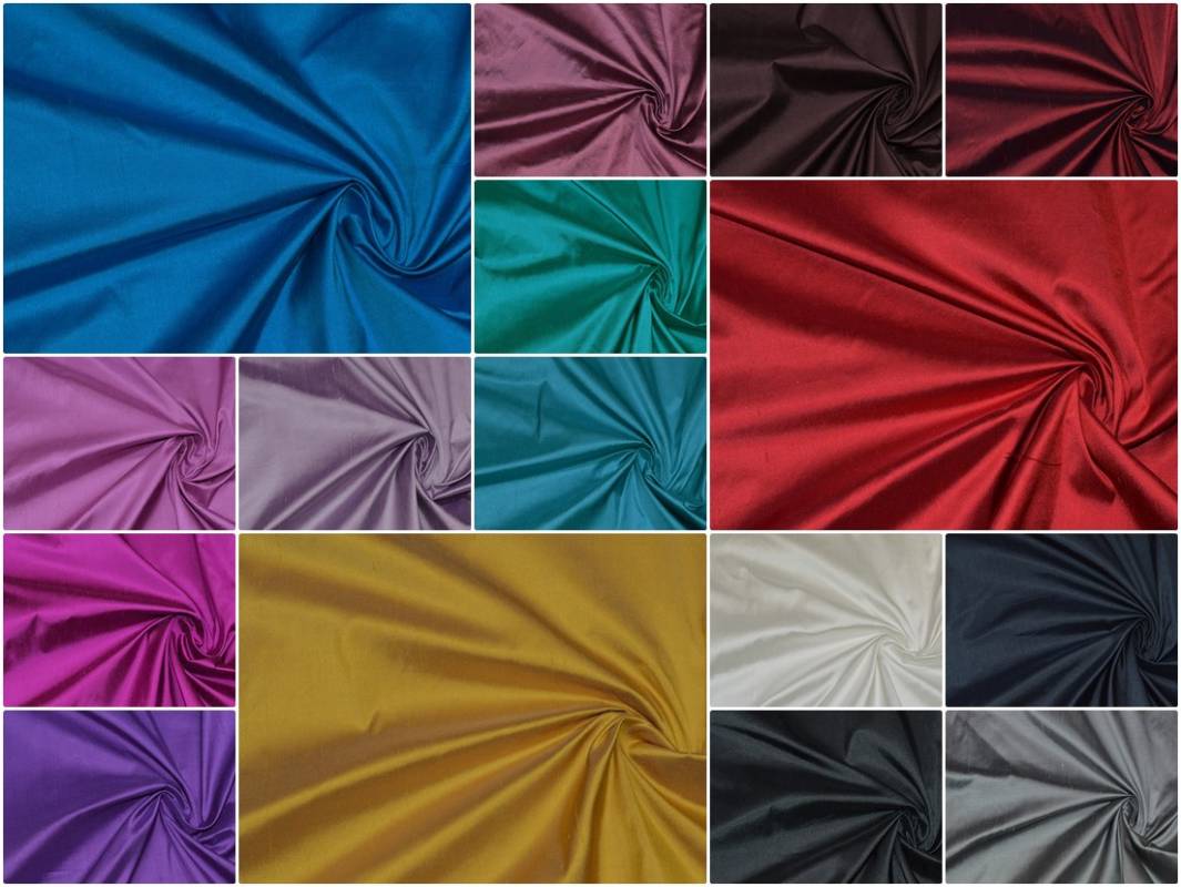 Disponibile nei colori: nero, grigio cangiante nero, bianco seta, blu scuro, azzurro, viola, fuscia cangiante nero (fucsia scuro), fucsia, glicine, lilla, rosa antico scuro, rosso, rosso cangiante nero, giallo, turchese, verde acqua, marrone.