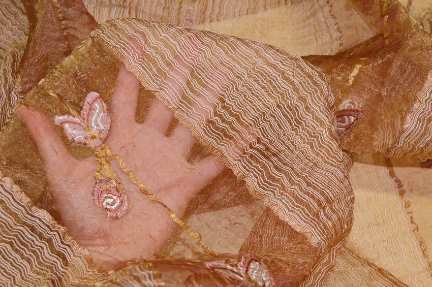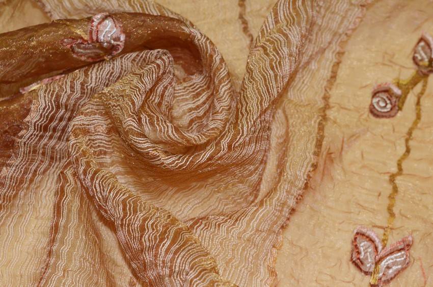 TESSUTO TENDA ORGANZA STROPICCIATA RAME CON RICAMO FILL COUPE