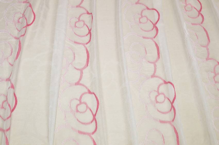 Bellissimo velo di fondo panna vivacizzato dalla particolare, ma raffinata fantasia fiorata color fucsia, perfetta per arredare con stile e giocosità il proprio ambiente. La stoffa una volta affissa si presenta molto cadente, leggera e filtrante alla luce, ottima per abbellire ed illuminare l'ambiente realizzando ogni tipologia di tenda arricciata.