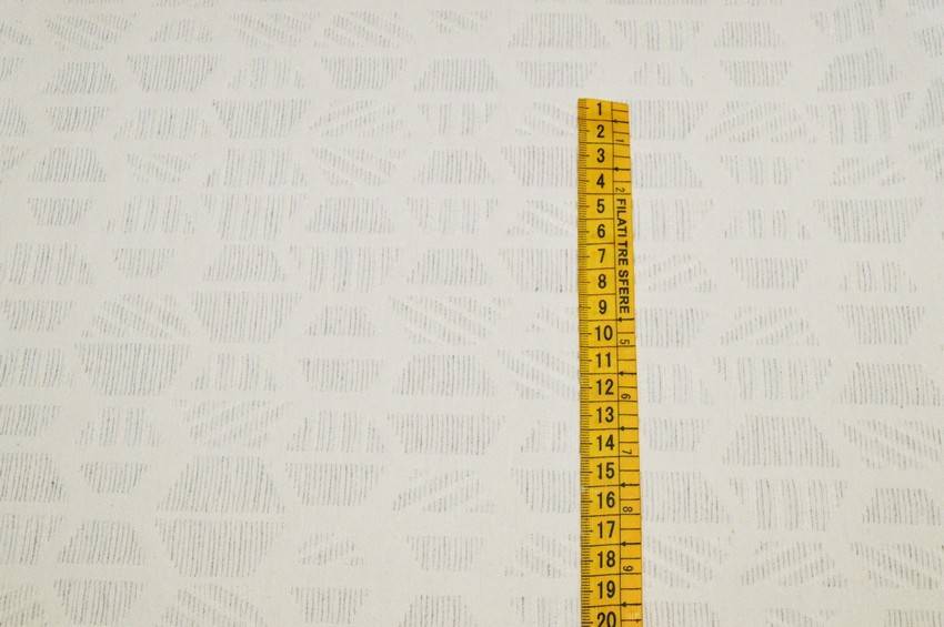 Splendido tessuto da tappezzeria resistente e coprente impreziosito dal delicato fondo color naturale con fantasia jacquard geometrica. Moderno, minimale e di pesantezza sostenuta è ottimale per essere adoperato in progetti d'arredo casa quali rivestimenti di divani, poltrone e cuscini. Utilizzato comodamente anche per mantovane, copritavoli, copricassettoni ed altri lavori di cucito creativo.