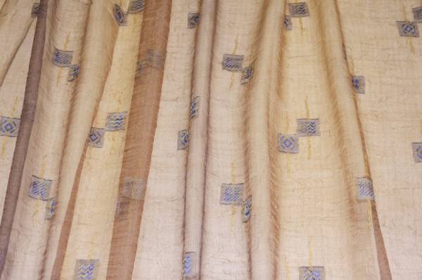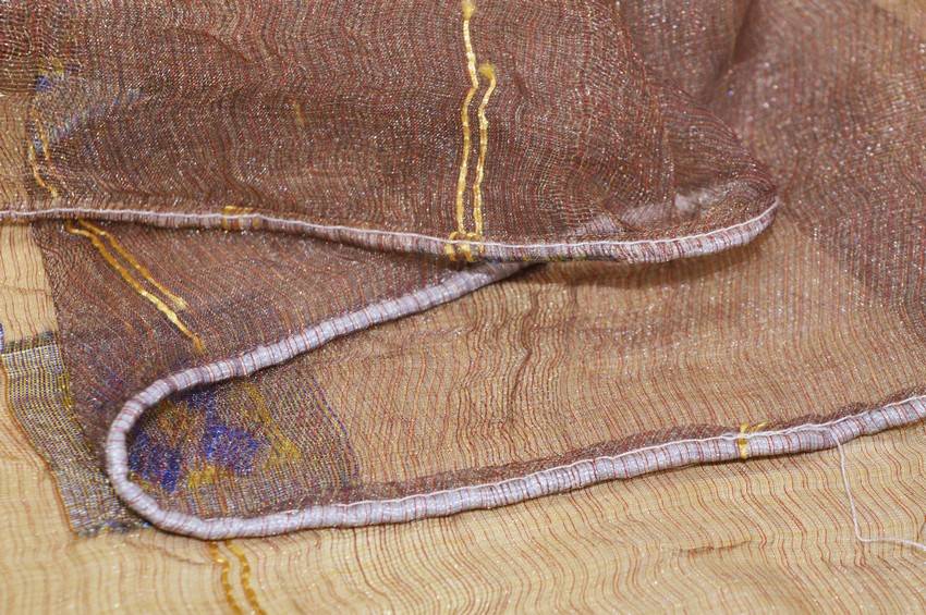 Splendido tessuto in organza stropicciata idoneo per la realizzazione di tendaggi dalla mano cadente e leggera unita ad un aspetto trasparente e filtrante alla luce. Il fondo presenta una lussuosa ed elegante colorazione effetto cangiante la quale cattura differenti sfumature e nuance dal rame al viola. Viene inoltre arricchito da piccole applicazioni dorate e blu per un aspetto prezioso ed unico. Ideale per confezionare tutte le tipologie di tende arricciate.