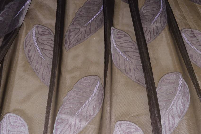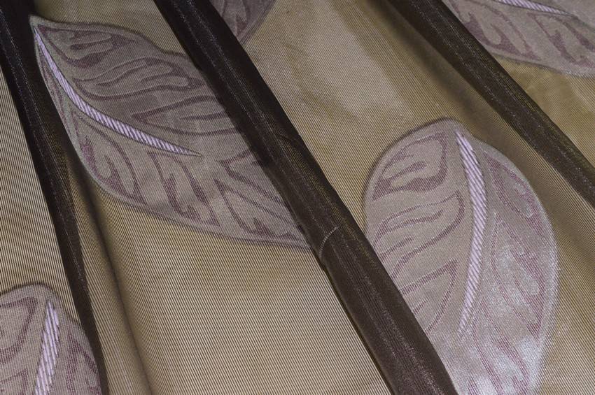 Tessuto per tendaggi in organza dalla mano trasparente, leggera ma dalla struttura sostenuta la quale regala un arricciatura voluminosa. Il fondo color wenge viene impreziosito da sottili linee leggermente in rilievo e dagli splendidi dettagli naturalistici lilla a contrasto. Unica, originale e preziosa è perfetta per abbellire il proprio ambiente realizzando ogni tipologia di tenda arricciata.