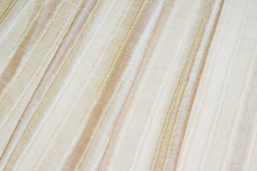 Ottimo tessuto per tendaggi 100%Made in Italy di alta qualità in misto lino dall'aspetto cadente, morbido e semitrasparente, perfetto per lasciare entrare la luce ed illuminare gli spazi. Il fondo viene suddiviso in irregolari fasce verticali di differenti gradazioni di beige. Ideato per tendaggi si presta perfettamente alla confezione di tende morbide ed arricciate di ogni tipologia.