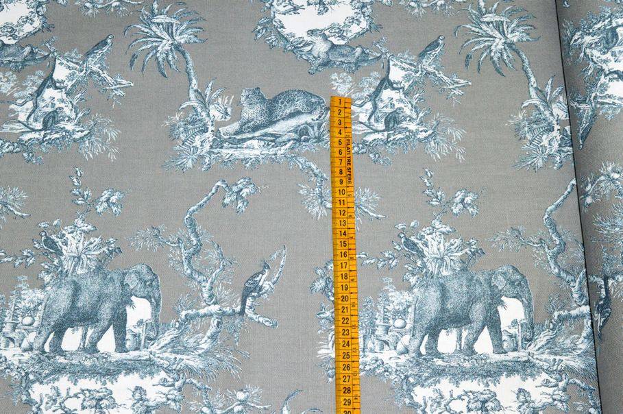 Vendita online cotoni toile de jouy tessuto panama puro cotone toile de jouy grigio disegno giungla - Tessuti & Stoffe