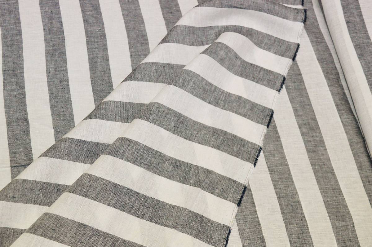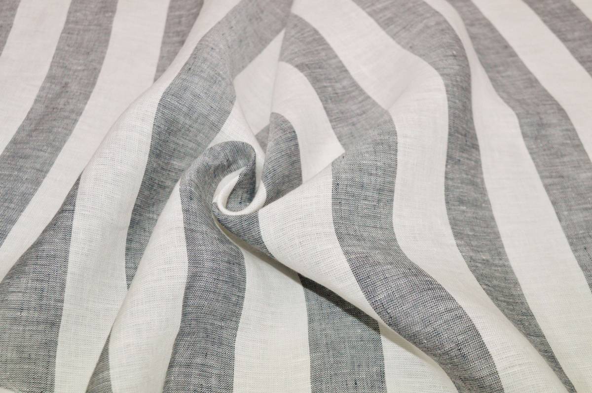Bellissimo tessuto di puro lino con mano piacevolmente leggera e fresca. Si presenta inoltre morbido, cadente e coprente al tatto. Il fondo bianco naturale (non bianco ottino, non panna) viene decorato dalla rigatura blu dall'aspetto minimale e moderno. Grazie alla sua media pesantezza viene comodamente utilizzato per confezionare abbigliamento primavera/estate come scamiciate ed abitini.