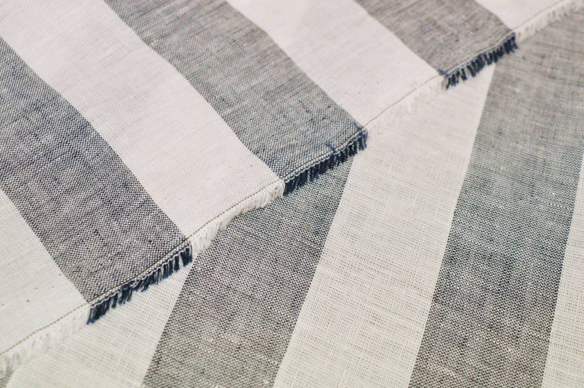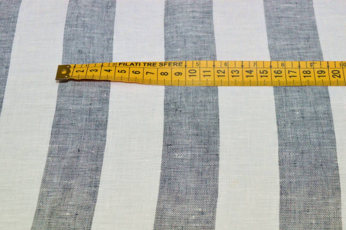 TESSUTO PURO LINO RIGONE BIANCO BLU