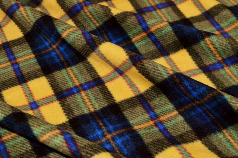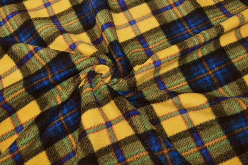Splendido tessuto di pile a scacchi composti dalle differenti tonalità di giallo e blu. La stoffa presenta inoltre un trattamento antipilling il quale impedisce la formazione dell'effetto pilling senza modificare la morbidezza del tessuto.