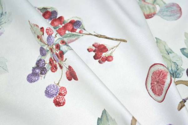 Bellissimo tessuto Panama interamente naturale realizzato in puro cotone. Il fondo bianco viene decorato dalla splendida fantasia con frutti di bosco misti, perfetta per uso quitidiano. Idealizzato per confezionare tovagliati, lavori di arredo cucina come presine ed oggettistica varia ed altri progetti di cucito creativo.