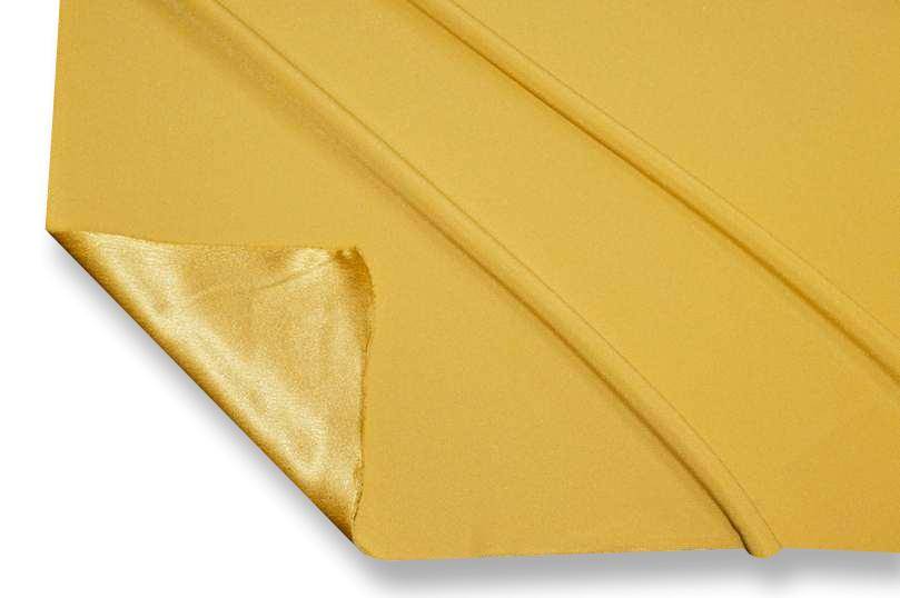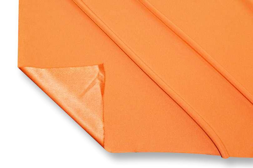 Tessuto Crepe Cady con rovescio satinato disponibile in numerose colorazioni tinta unita. Il prodotto si presenta con una mano morbida, fluente e granulosa unita ad un aspetto opaco dal dritto e lucido voltato al contrario.