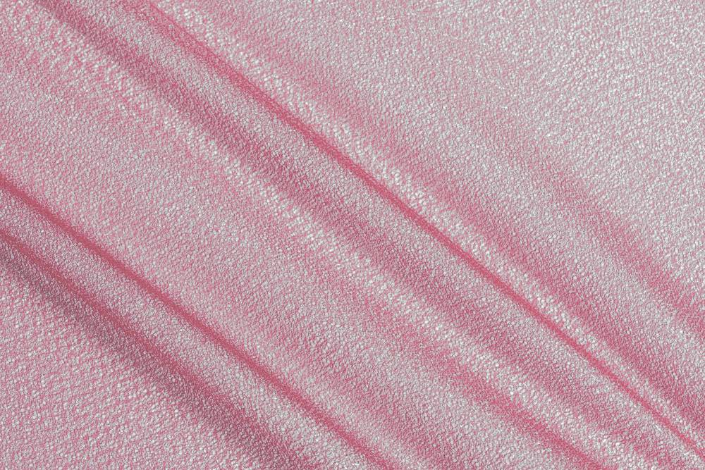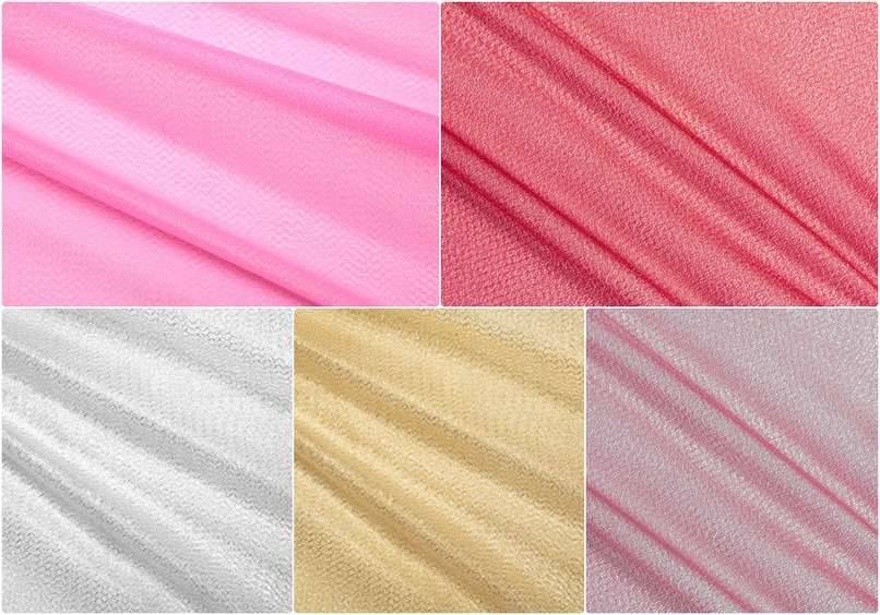 Bellissimo tulle dalla struttura semirigida e dall'aspetto trasparente e luminoso conferito dalla leggera laminatura disponibile in cinque varianti colore: Rosso, Fucsia flou, Rosa, Oro ed Argento.