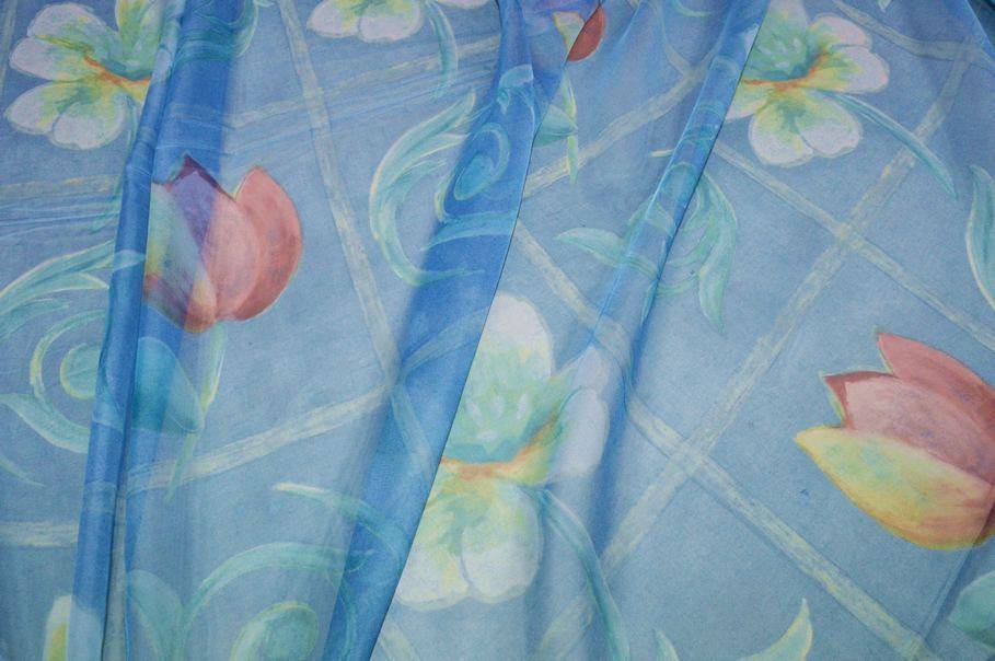 Vendita online tessuti per tende offerta tessuto velo stampa fiore fondo azzurro - Tessuti & Stoffe