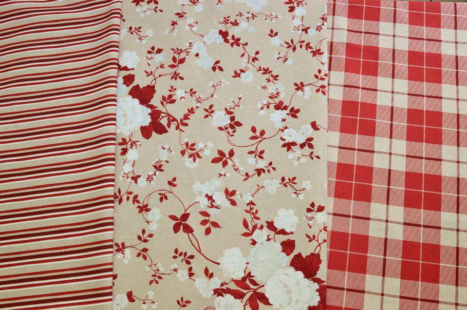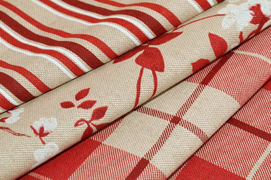 L'articolo offre una completezza ed una versatilità unica poiché viene proposto in tre splendide fantasie sui toni del rosso studiate per essere utilizzate separatamente o coordinate tra loro. Il primo dei due motivi geometrici viene composto da scacchi di 12x12 cm circa, il secondo da linee orizzontali. L'ultima fantasia offre invece una meravigliosa stampa floreale distribuita a campo pieno su tutta la lunghezza per un design sorprendente ed adattabile sia agli ambienti moderni che classici.