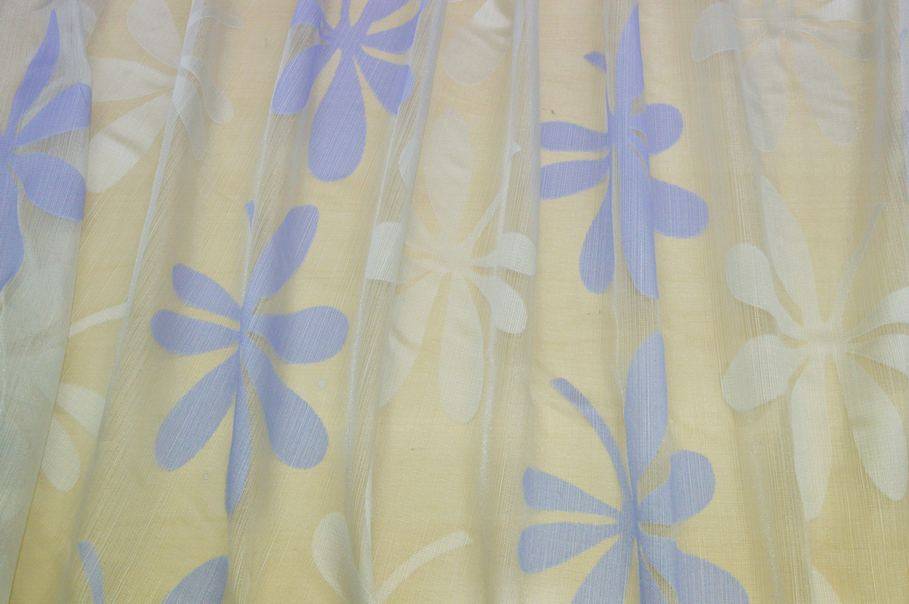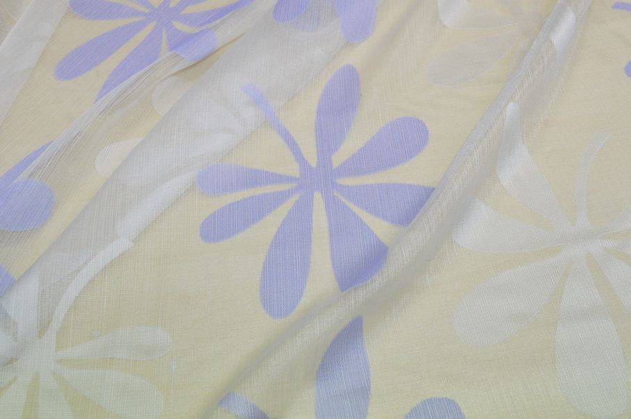 Splendido tessuto in organza con fondo molto leggero e trasparente color naturale, ottimo per lasciar filtrare la luce ed illuminare l'ambiente. Grazie alla sua composizione la stoffa non assume sgradevoli pieghe e stropicciature indesiderate. Ad impreziosire il fondo vi sono le bellissime figure fiorate color naturale e lilla creando un vero e proprio elemento d'arredo di idniscussa bellezza. Idoneo per realizzare ogni modello di tende arricciate. Piombato in fondo.