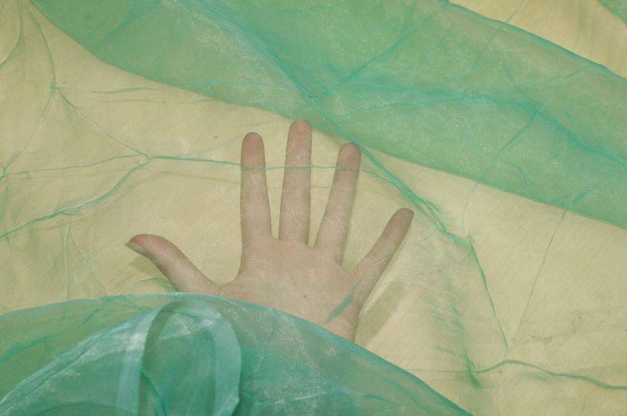 TESSUTO ORGANZA STROPICCIATA VERDE LAGUNA