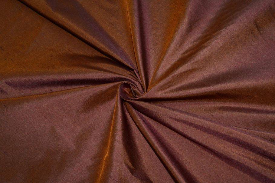 TESSUTO SHANTUNG PURA SETA MARRONE BRUCIATO CANGIANTE