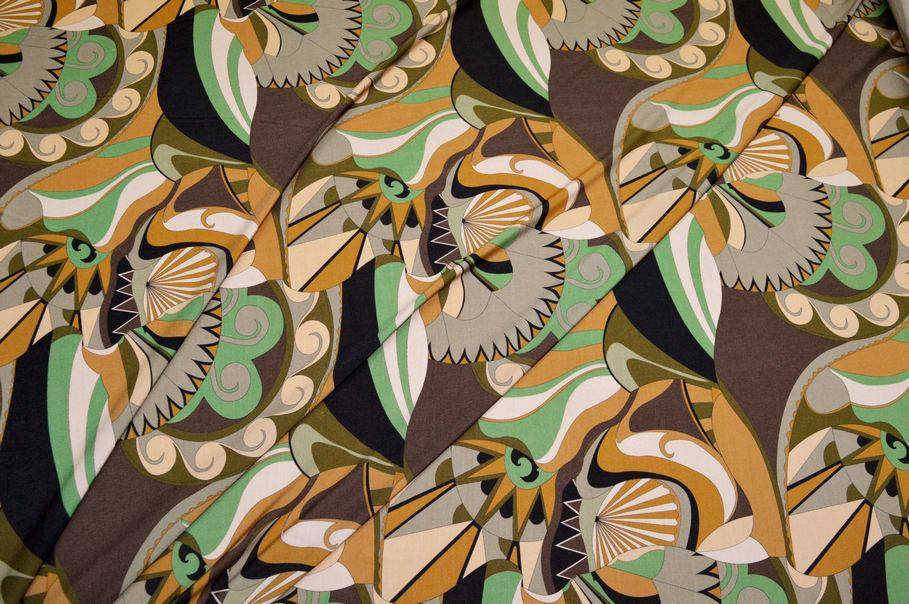 TESSUTO MAGLINA VISCOSA FANTASIA ETNICA OCRA
