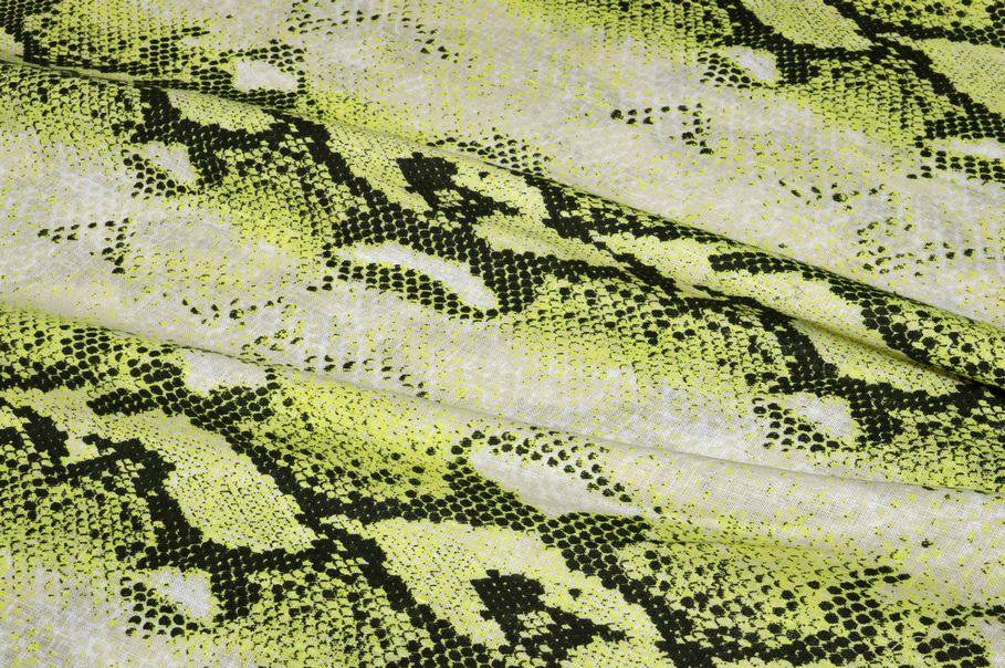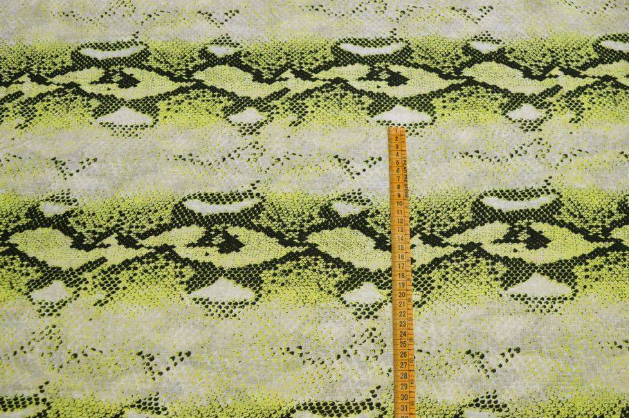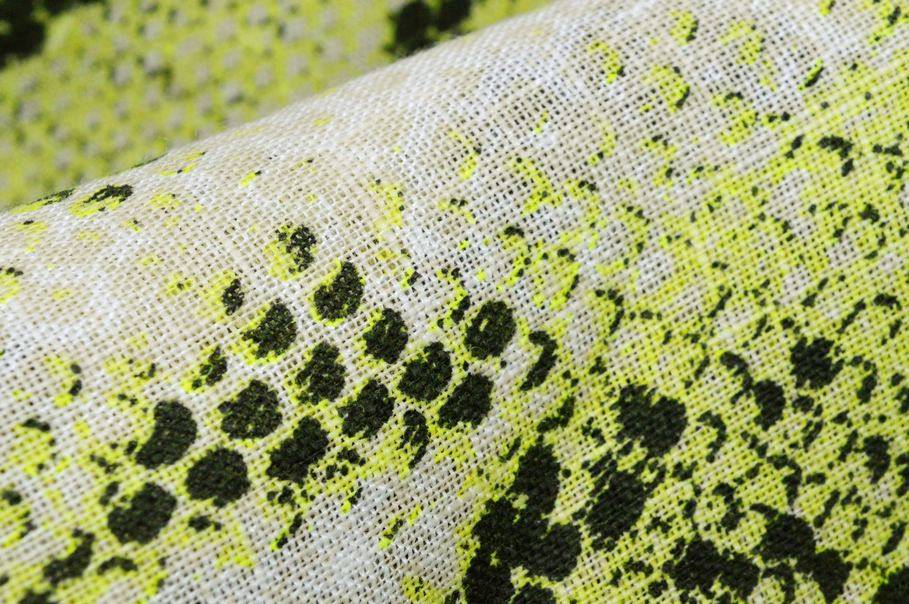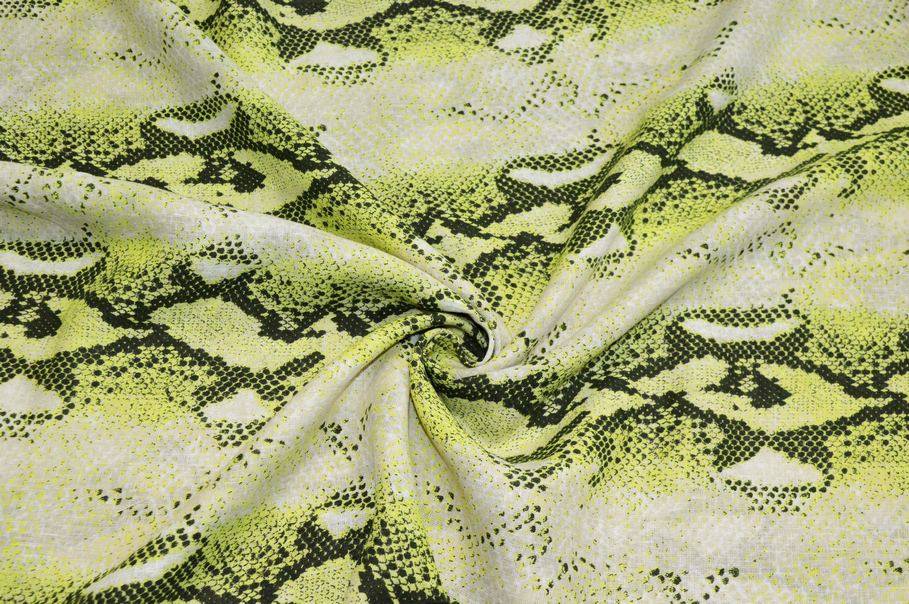 Ottimo tessuto realizzato completamente in fibre 100%naturali di puro lino le quali garantiscono una mano molto piacevole, leggera e fresca sulla pelle. Una volta indossato risulta inoltre morbido e cadente. La base viene particolareggiata dalla singolare fantasia pitonata composta da bande orizzontali nere e verde flou.