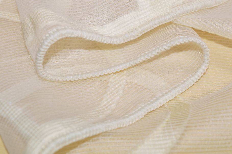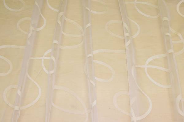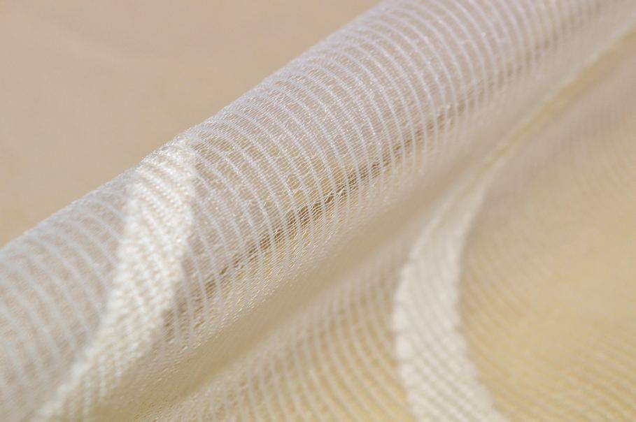Tessuto per tende caratterizzato da un fondo in organza panna moltro trasparente, leggero e filtrante alla luce, caratteristiche ottimali per realizzare tende che decorano l'ambiente senza comprometterne la luminosità. La base viene inoltre abbellita da morbide linee ondulate coprenti in tono. Idonea per realizzare tende arricciate di ogni tipologia.