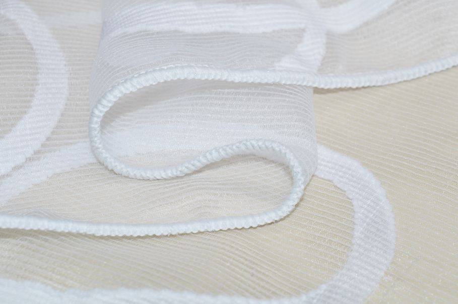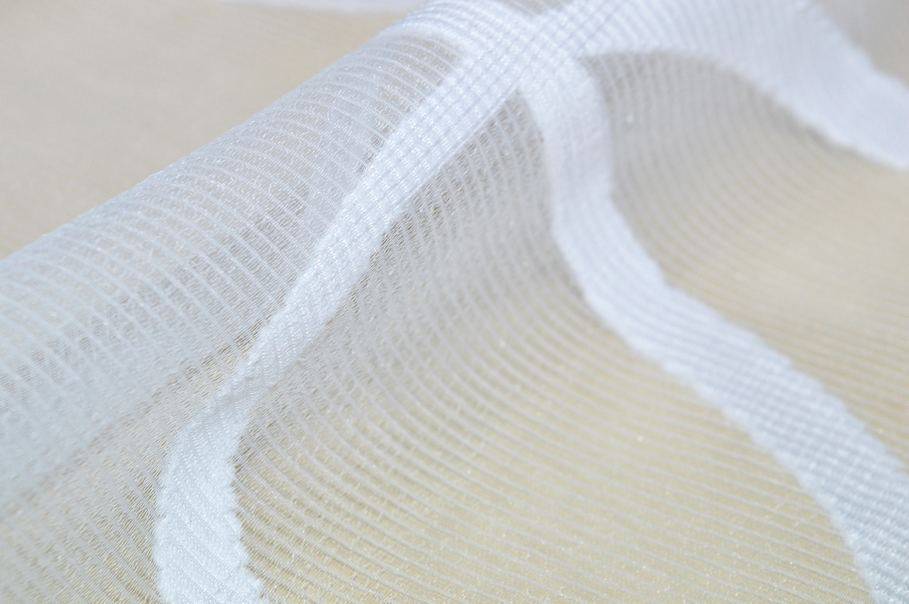 Tessuto per tende caratterizzato da un fondo in organza bianco moltro trasparente, leggero e filtrante alla luce, caratteristiche ottimali per realizzare tende che decorano l'ambiente senza comprometterne la luminosità. La base viene inoltre abbellita da morbide linee ondulate coprenti in tono. Idonea per realizzare tende arricciate di ogni tipologia.