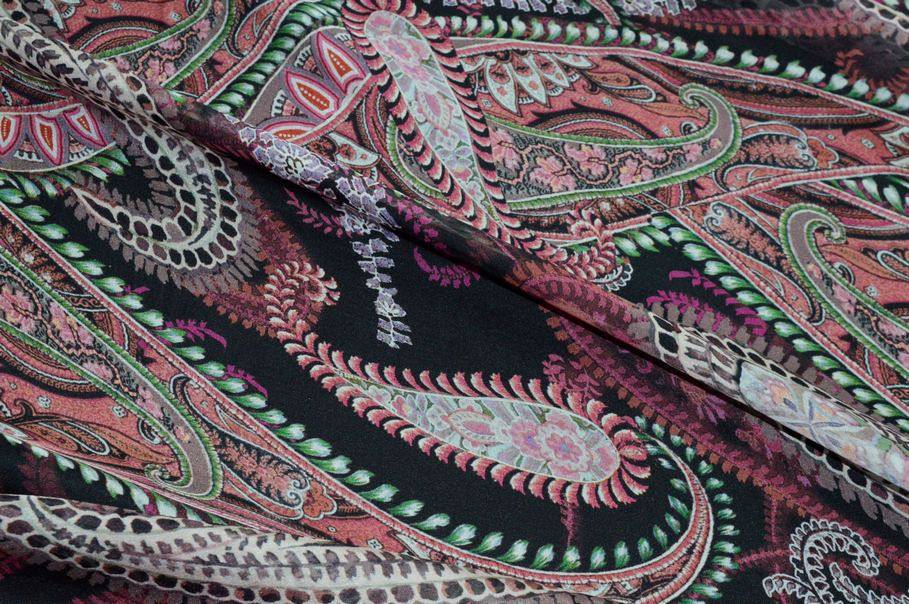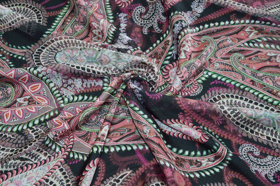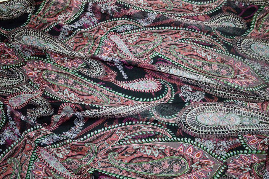 TESSUTO CHIFFON PURA SETA FANTASIA CASHMERE FONDO NERO