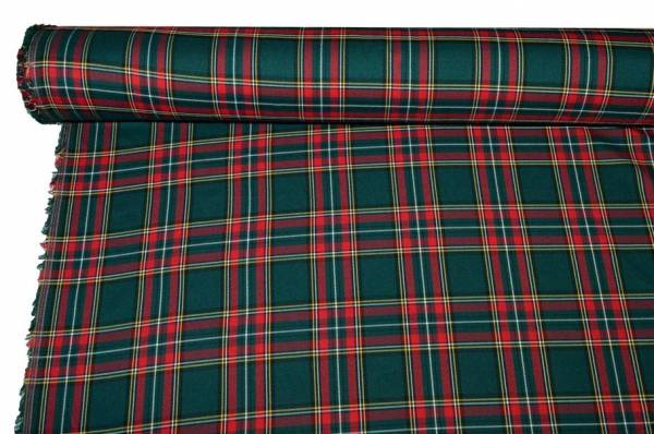 Tessuto tartan streatch piacevolmente pettinato, liscio e confortevole al tatto. Grazie alla presenza di elastan risulta inoltre estensibile adattandosi perfettamente ad ogni tipologia di fisicità. Il fondo presenta l'iconica scacchettatura tartan composta da quadri color verdone e rossi. Di medio peso si presta comodamente alla realizzazione di gonne dritte o a pieghe, tailleur, giacche, pantaloni, gilet e tanti altri capi d'abbigliamento per le stagioni autunno ed inverno.