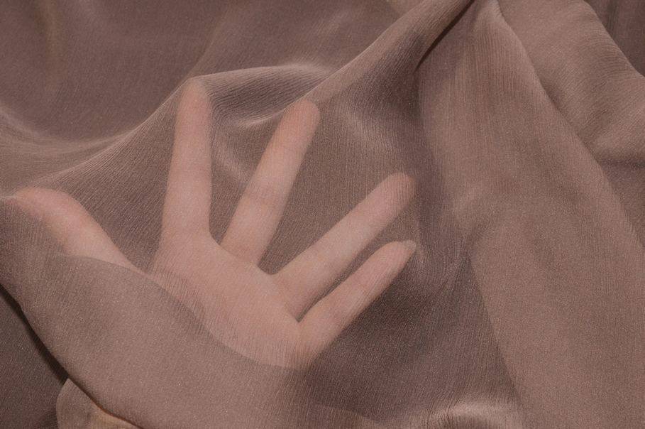 TESSUTO CHIFFON PURA SETA EFFETTO CREPON TORTORA SCURO