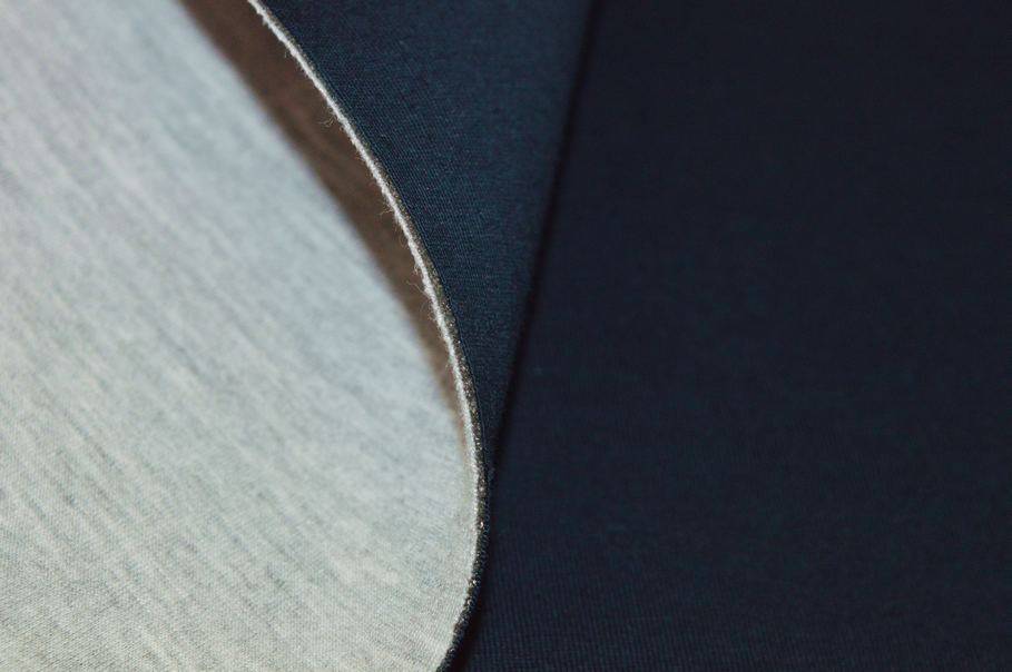 Tessuto tecnico di neoprene double in viscosa composto da un lato blu e da uno grigio con sottile gommapiuma centrale. Di struttura sostenuta è un prodotto idoneo per realizzare giubbini ed abbigliamento sportivo. Spessore 1,5 mm (Articolo non idrorepellente).