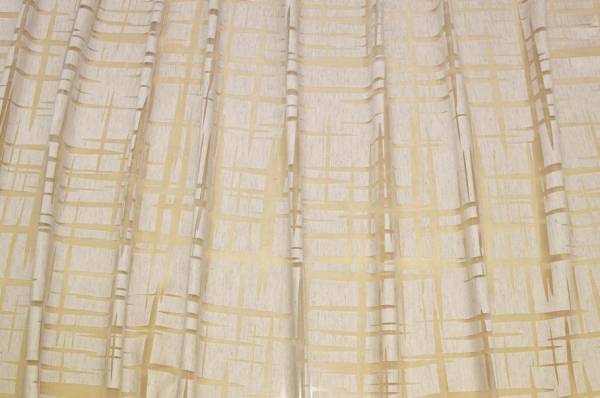 Via roma 60 presenta un nuovissimo design moderno della sua collezione LOVELY STRATCH nella variante colore 0101 Naturale, caratterizzato dalla lavorazione in devoreh. Il fondo presenta un motivo effetto mosaico coprente color naturale impreziosito da sottili striature irregolari beige che creano un delicato ed armonioso contrasto con la base. A completarne lo stile troviamo segmenti trasparenti che attraversano il tessuto, tipici dlle stoffe in devoreh.