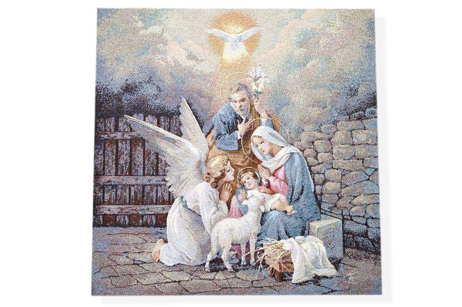 Tessuto fantasia a tema natalizio con raffigurazione della Natività in Gobelin piazzata cm 47x47. Articolo utilizzato per realizzare graziosi copricuscini, sottopiatti, tovagliette e lavori di cucito creativo vario.