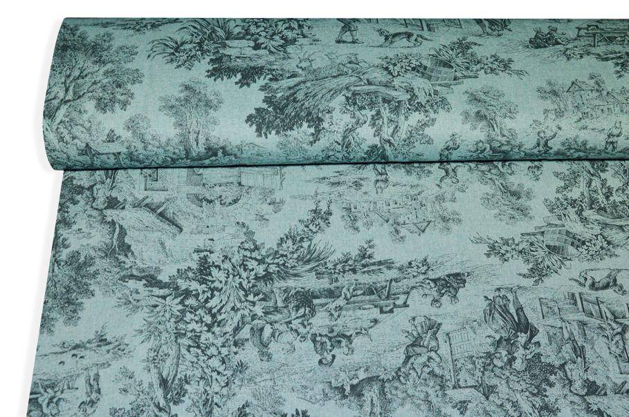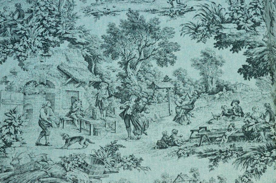 Vendita online cotoni toile de jouy tessuto panama puro cotone toile de jouy fondo azzurro - Tessuti & Stoffe