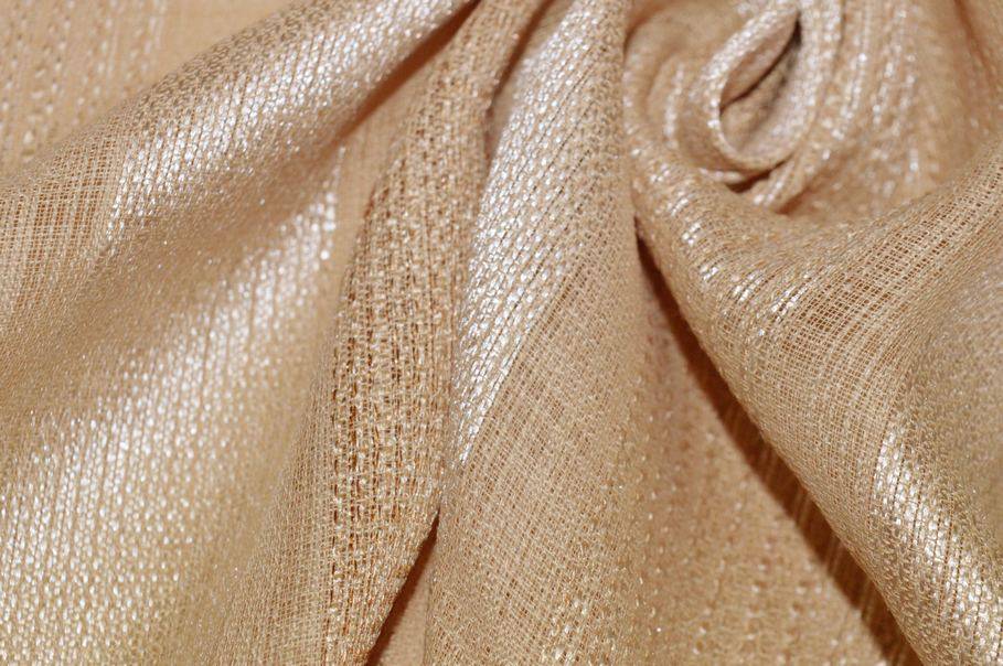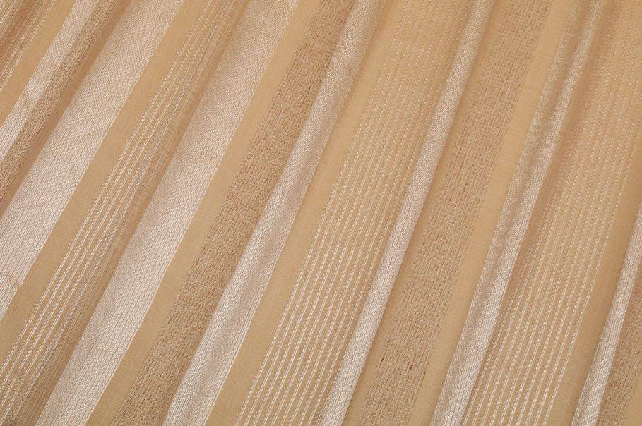 Tessuto idoneo per la realizzazione di tende arricciate amato per la sua mano leggera e cadente, perfetta per creare onde sinuose e morbide. Nella sua variante beige risulta essere un articolo di design molto raffinato ed elegante, arricchito dalle fasce verticali dorate che aggiungono un bellissimo scintillio alla stoffa.